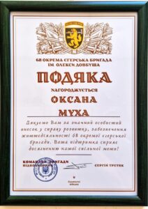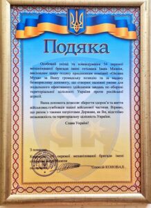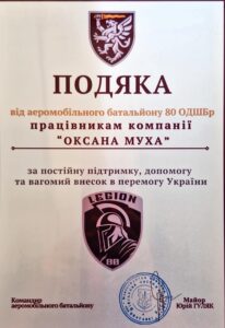 Ми отримали численні подяки від українських військових підрозділів та громадських організацій за надану допомогу, підтримку обороноздатності держави, активну волонтерську діяльність та сприяння у забезпеченні гуманітарної допомоги, що робить вагомий внесок у перемогу та безпеку України.